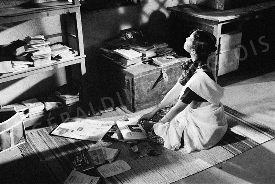 Pour photographier le cinéma d’auteur indien dit « parallèle », et surtout ce cinéma bollywoodien hérité de la tradition du spectacle vivant, fortement coloré, gesticulant, chantant, Géraldine Langlois a opté pour le sobre et plus austère noir et blanc.